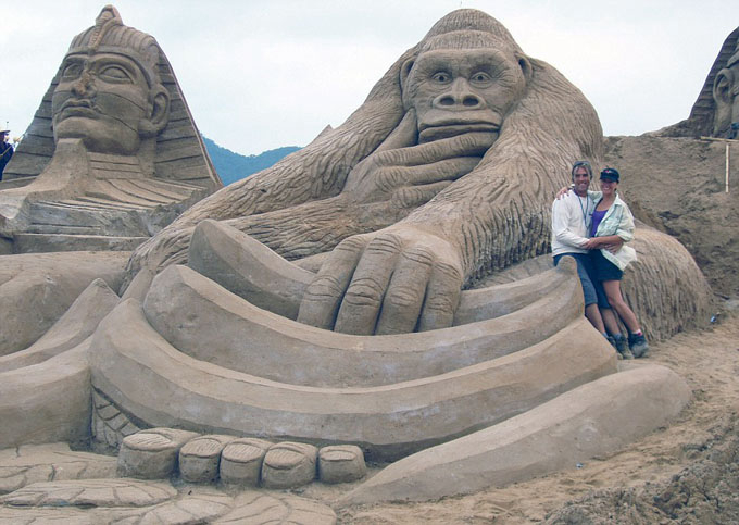 在海边长大的孩子,童年记忆最难忘的一定是沙滩,因为热爱科幻片的孩子们,曾经一定把沙子堆成城堡、怪兽等等样子。不过,对于小时候的我们来说,那些用沙子堆出来的东西虽然带给我们无限欢乐,可是那些算不上艺术品,终被潮水带走了。但是,对于保罗·赫格德和他的妻子雷姆来说却不一样,他们将沙雕创作当成自己喜欢的事业来做。